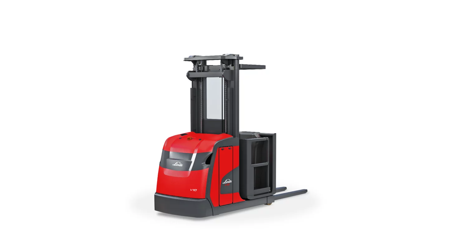 The Linde V10 electric medium-level order picker is designed for efficient and safe operation in warehouses. With a load capacity of 2,200 lbs, this truck offers superior visibility, ergonomic controls, and advanced AC technology for optimal performance and durability. The V10 ensures maximum operator comfort with its cushioned platform and customizable operator compartment, making it ideal for demanding order picking tasks.